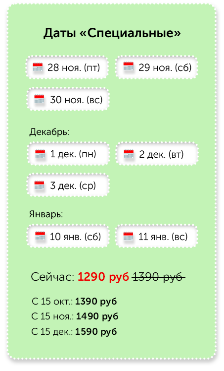 Вы вносите предоплату за группу всего 5000 руб, чтобы закрепить за собой дату