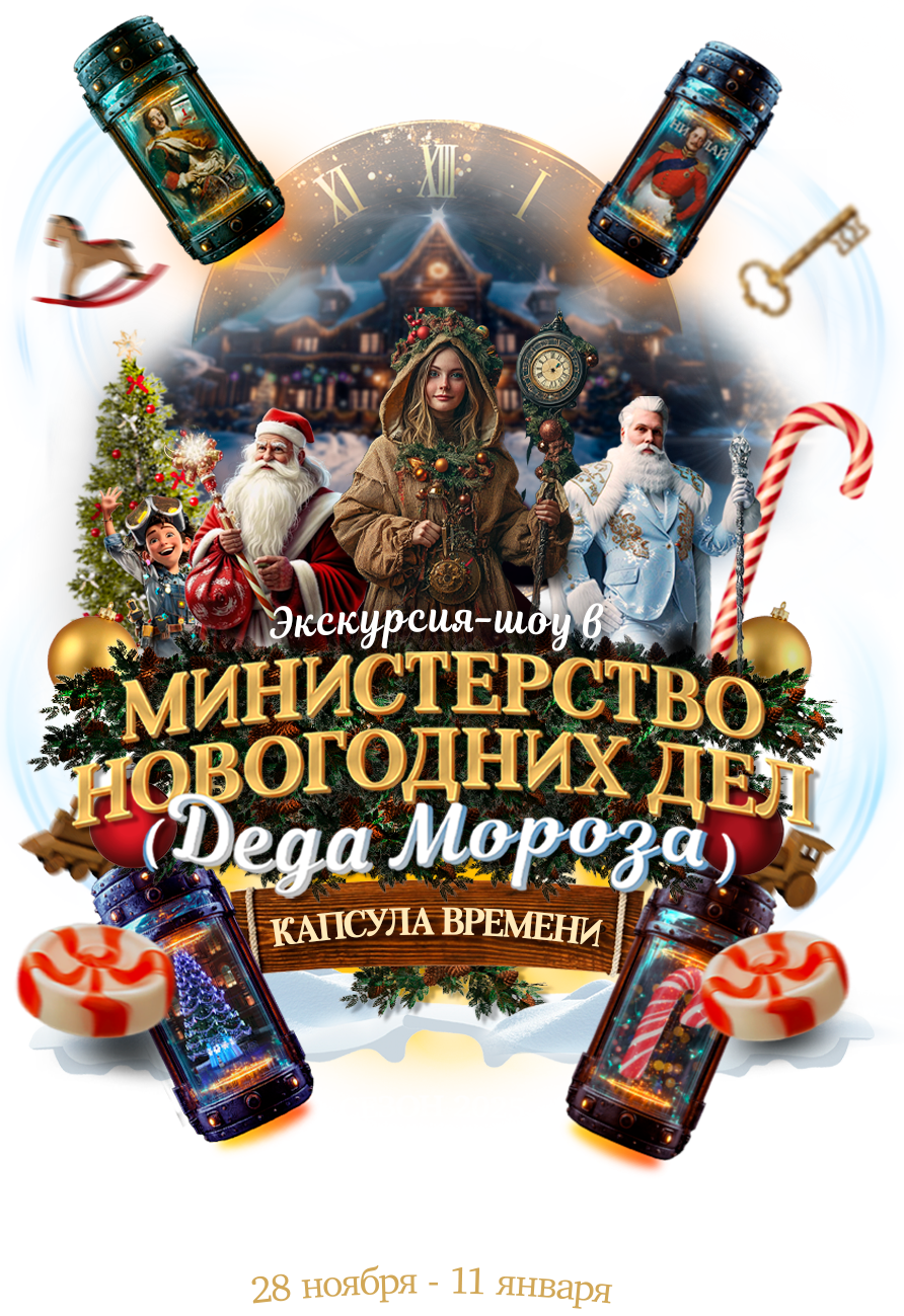 Большое новогоднее расследование! По ходу программы дети разгадают тайну хранителей времени, восстановят капсулы времени и выведут на чистую воду злодея министерства. Всё это будет красиво, загадочно и технологично!
