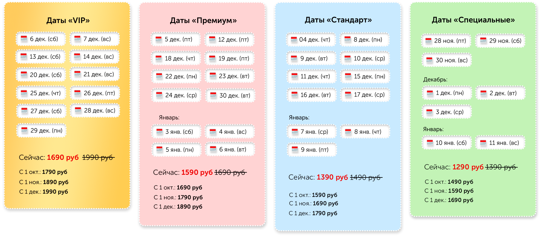 Цена зависит только от привлекательности даты и периода осуществления бронирования!