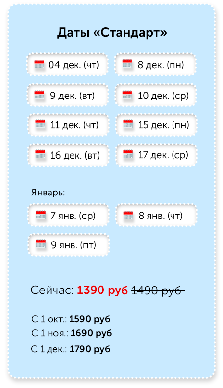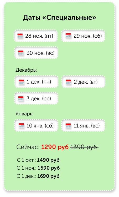 Вы вносите предоплату за группу всего 5000 руб, чтобы закрепить за собой дату